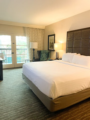 We stayed in an Atrium room with a king bed. The atrium rooms face inwards to the center of the building which provide a beautiful view of the architectural design and details that make up the Gaylord. Our room was located near the riverwalk so we got to overlook the small indoor river to the left and the large entrance to the right.