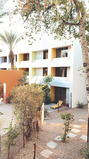 We arrived in scottsdale around 2pm which felt like perfect timing for us, slow morning but still plenty of the day to spend in a new city. After getting off the plane and picking out our rental car, we headed to happy hour at Brat Haus, which was about 20 minutes from the airport. The atmosphere was so fun with tons of outdoor games and great jams to set the scene for a wonderful weekend trip! Alec ordered a 4oz flight and got to try 4 different beers. His fave was the Hefeweizen but all of them were super tasty. I ordered a loose goose which was the sweetest drink I've ever had (which is saying something because I like sweets) plus we shared a pretzel app to tide us over before dinner. Once we played a few rounds of giant jenga and paid the bill we headed to our hotel to check in. We were greeted by the friendliest staff members and such a cute, unique hotel.